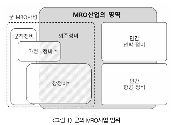 글로벌 방산 시장 중 MRO가 차지하는 비중은 60~70%로, 무기체계 개발 및 생산(30~40%)보다 더 많은 비중을 차지하고 있습니다.