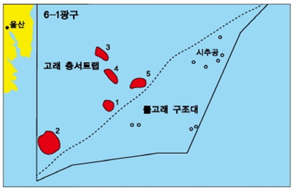 이 5개의 유망구조를 고래1~고래5로 명명하고 이중 고래 5 지역에서 가스전이 발견돼 400만톤 규모의 동해-1 가스전 개발로 이어지게 되었습니다.