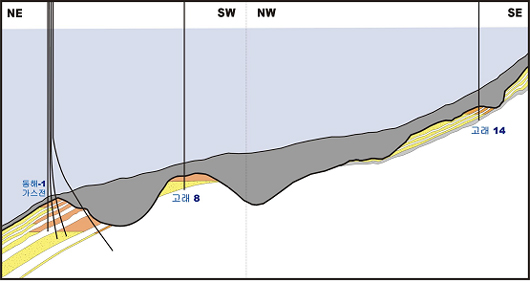 해양 유기물이 많았던 신생대 3기의 퇴적분지로 구성된 동해에서의 초반 석유 탐사는 석유가 있을 확률이 높은 배사트랩구조를 찾기 위해 집중했었습니다.