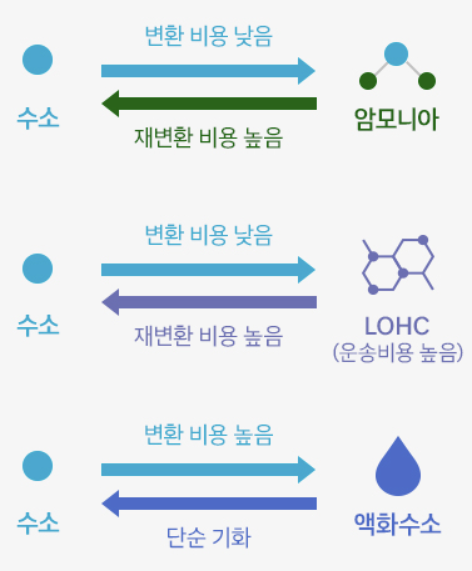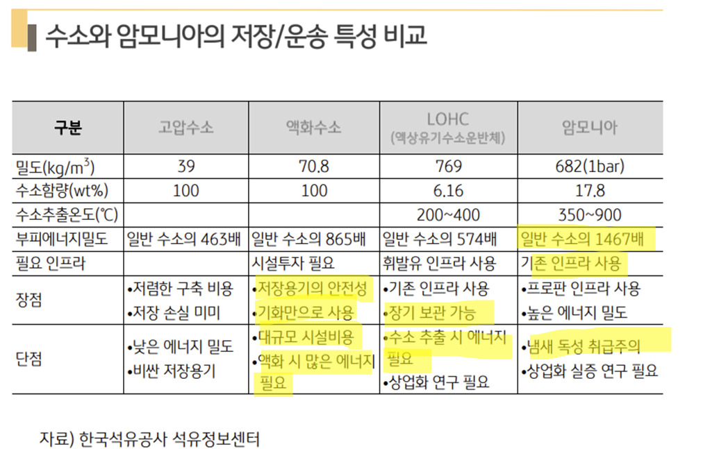 다만 암모니아에서 다시 수소로 재분해하는 크래킹 시설 구축 비용이 크고, 아직 크래킹 공정 기술의 연구개발이 더 필요하며, 암모니아 거래 가격에 민감하다는 단점이 있습니다.