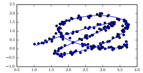 매니폴드 학습이란 아래 그림과 같이 고차원의 꼬여있는 데이터 분포에서 매니폴드(실선)를 모델링하는 것을 말합니다.