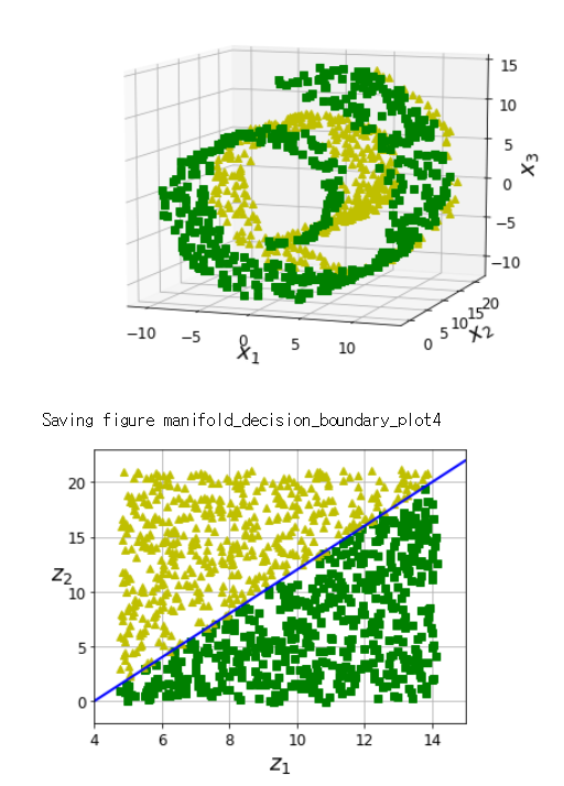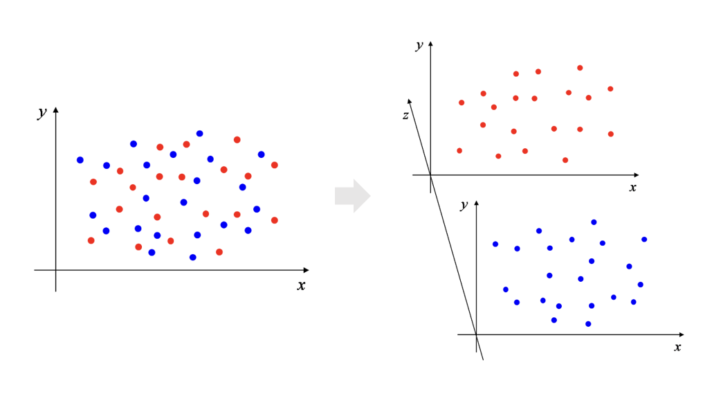 아래와 같이 고차원 평면에서의 결정 경계가 데이터를 더 잘 표현할 수도 있습니다.