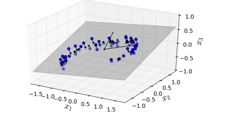 이처럼 고차원 공간 상의 데이터를 저차원의 부분 공간으로 투영하는 방법으로 주성분 분석 (PCA) 방법이 대표적입니다.