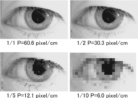 아래의 이미지를 보면 픽셀이 많아질수록 눈의 더 디테일한 형태까지 표현할 수 있는 것을 확인할 수 있습니다.