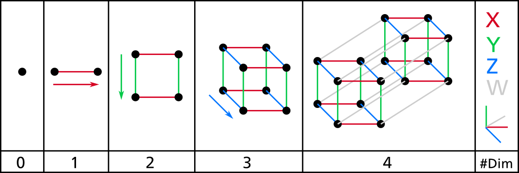 기하학적으로 차원은 공간 내에 있는 점의 위치를 나타내기 위해 필요한 축의 개수를 말합니다.
