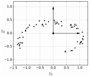 이때 꼬여있는 방향대로 부분 공간을 펼칠 수 있다면 투영과 같이 데이터를 특정 평면상에 분포시킬 수 있습니다.