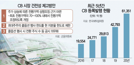 주로 사모로 발행되는 전환사채 특성 상 위의 조건들이 인위적인 주가 조정을 야기하고, 대주주 등의 지분 확보 수단으로 악용하는 등 일반 투자자들의 피해로 이어지는 사례가 많았습니다.
