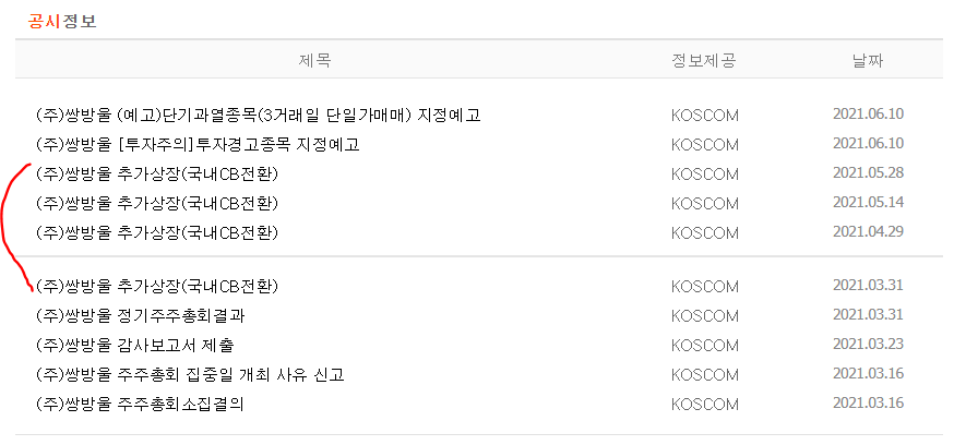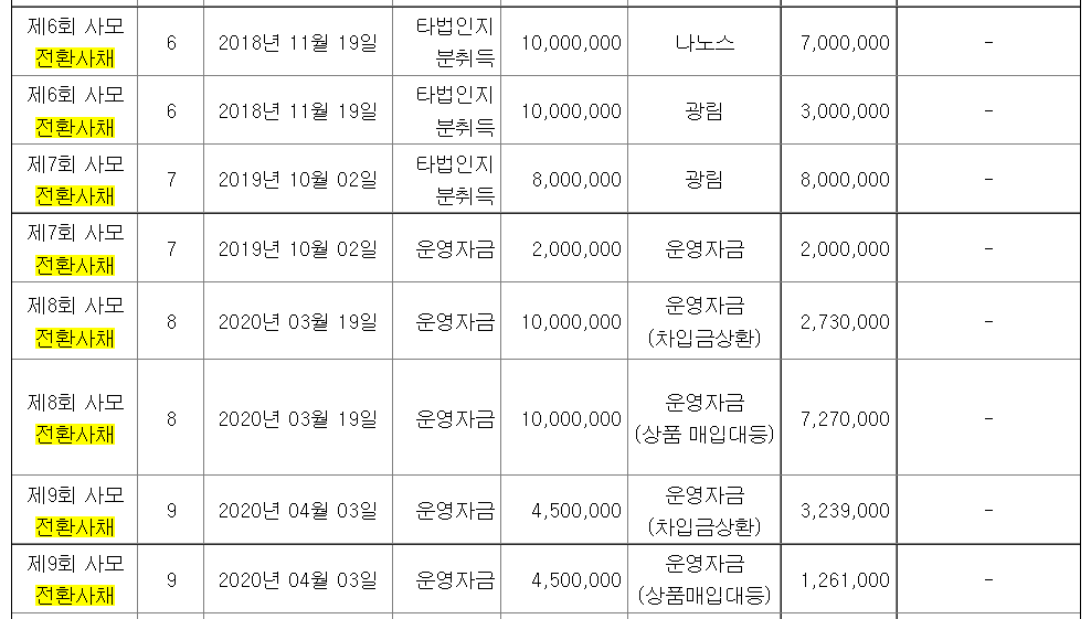전환사채를 자주, 많이 발행하는 기업의 투자는 매우 신중할 필요가 있습니다.