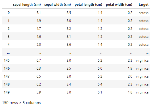 iris_df['target'] = iris_df['target'].map({0:"setosa", 1:"versicolor", 2:"virginica"})