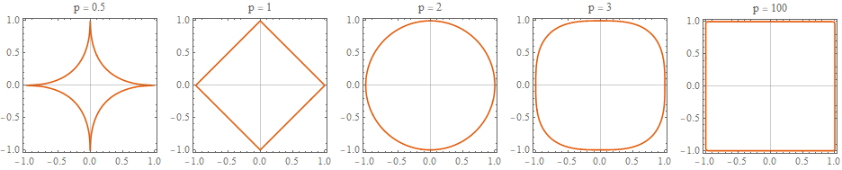 p의 차수에 따라서 Lp norm은 아래와 같은 형태를 띄게 됩니다.