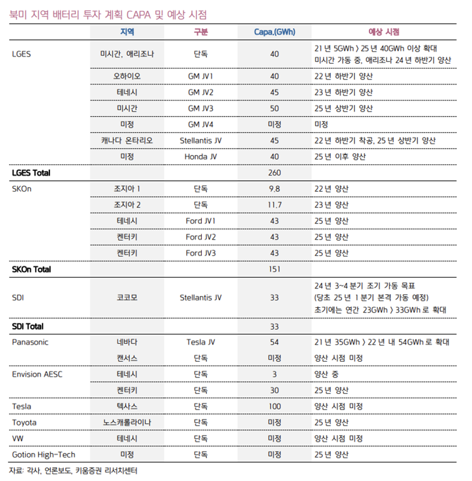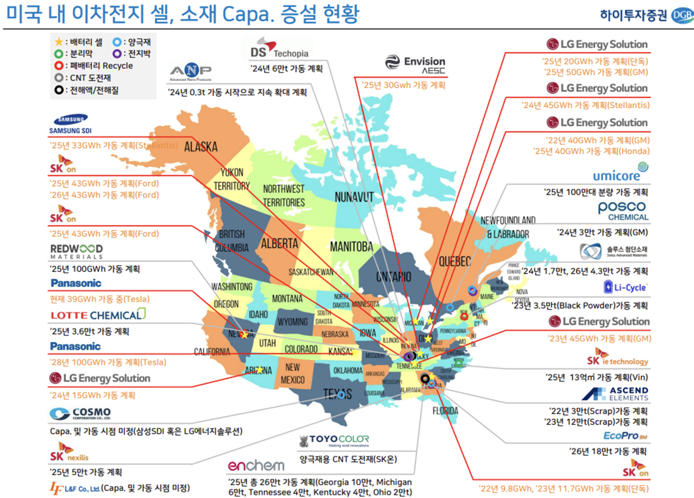LG에너지솔루션은 GM, 스텔란티스, 혼다와의 합작사를 통해 미국의 오하이오, 테네시, 미시간 등에 220GWh에 달하는 공장 CAPA 증설을 계획하고 있으며,